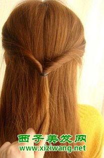 第三步:将右边的头发从中间穿过,从左边拉出来。